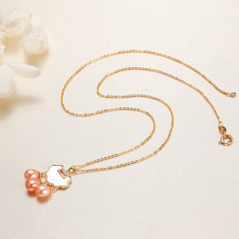 Brass Plated with 18K Gold Genuine Freshwater Pearl Lucky Necklace