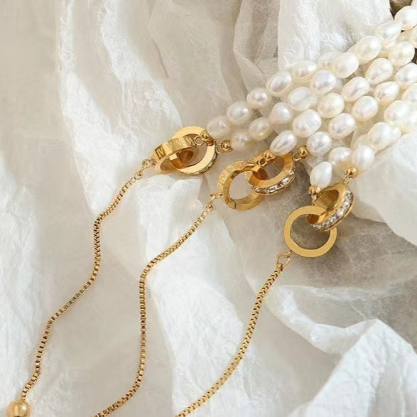 The Circle of Hope Necklace features a lustrous freshwater pearl elegantly paired with two interlocking circles, symbolising eternal connection and optimism. Crafted from 18K gold-plated titanium steel, this delicate choker-length piece combines meaningful design with modern durability. The lightweight, hypoallergenic construction ensures all-day comfort, whilst the tarnish-resistant finish maintains lasting beauty — perfect for sensitive skin and everyday sophistication.