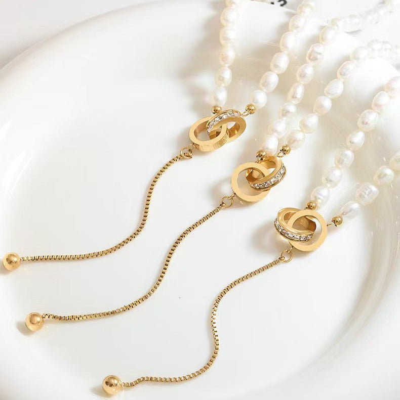 Genuine Freshwater Pearl Titanium Steel Circle of Hope Necklace