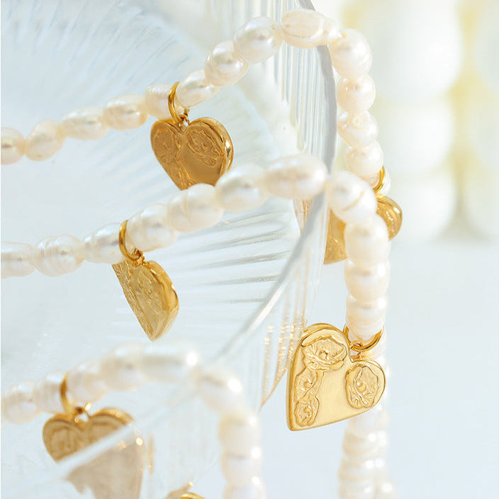 The Love Coin Necklace features a lustrous freshwater pearl delicately set atop an intricately designed coin pendant with open-worked detailing. Crafted from 18K gold-plated titanium steel, this piece combines romantic symbolism with practical durability. The lightweight, hypoallergenic construction ensures all-day comfort, whilst the tarnish-resistant finish maintains its beautiful lustre — perfect for sensitive skin and everyday elegance.
