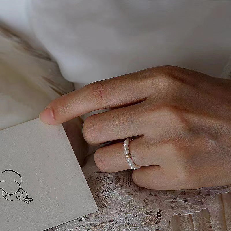Elevate your style with this exquisite solid 18K gold freshwater pearl rice ring. Featuring a delicate beaded design with lustrous freshwater pearls and an elegant 18K gold accent bead, this sophisticated piece captures minimalist elegance with timeless charm.